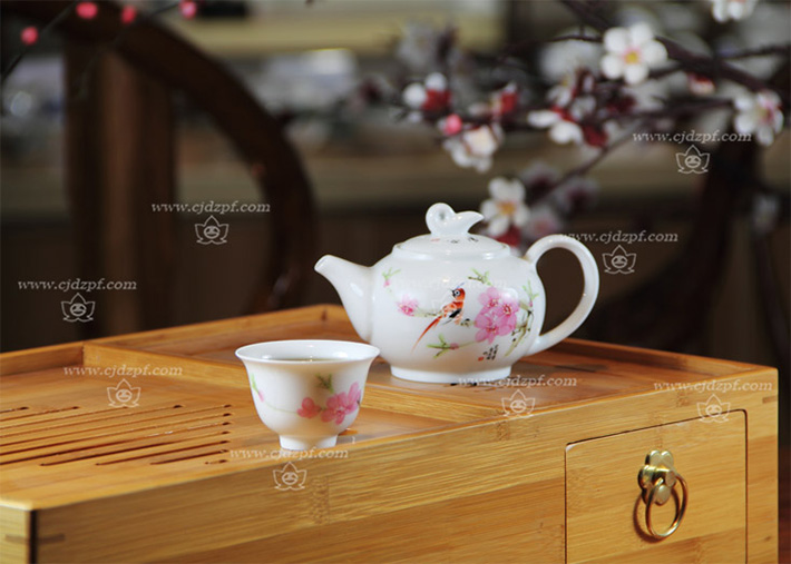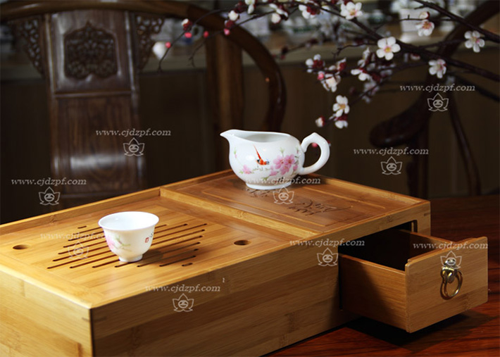 手繪功夫茶具(竹質茶海)水點桃花