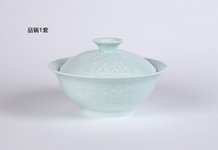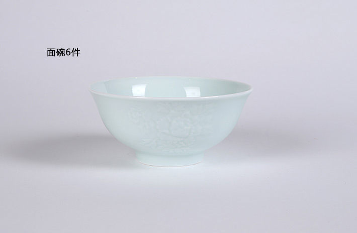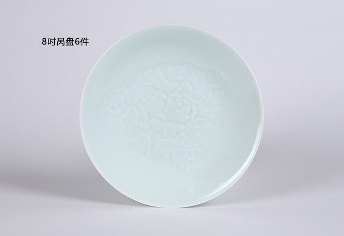 32頭影青雕刻餐具--牡丹花